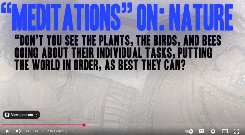 I grew up watching tons of educational videos, such as the one above. Horses, and exurb1a are two of my favourite creators who make mid-length videos (around 20 minutes) regarding a vast range of topics. This particular video is one about Marcus Aurelius. This is my favourite Stoicism video I’ve watched because it focuses on the actual history of who Marcus Aurelius was, why he lived that way, the challenges he faced, and overall paints a beautiful picture of the time and who he was.